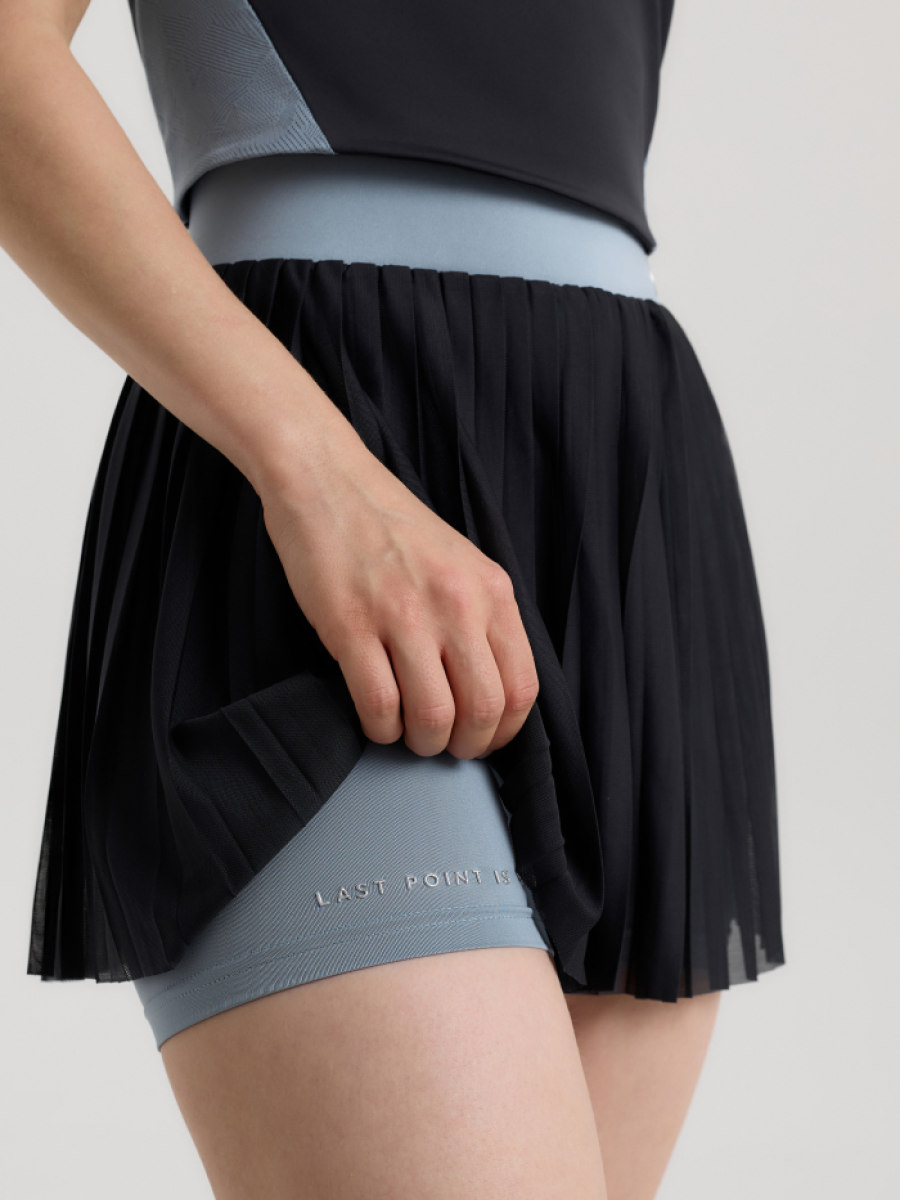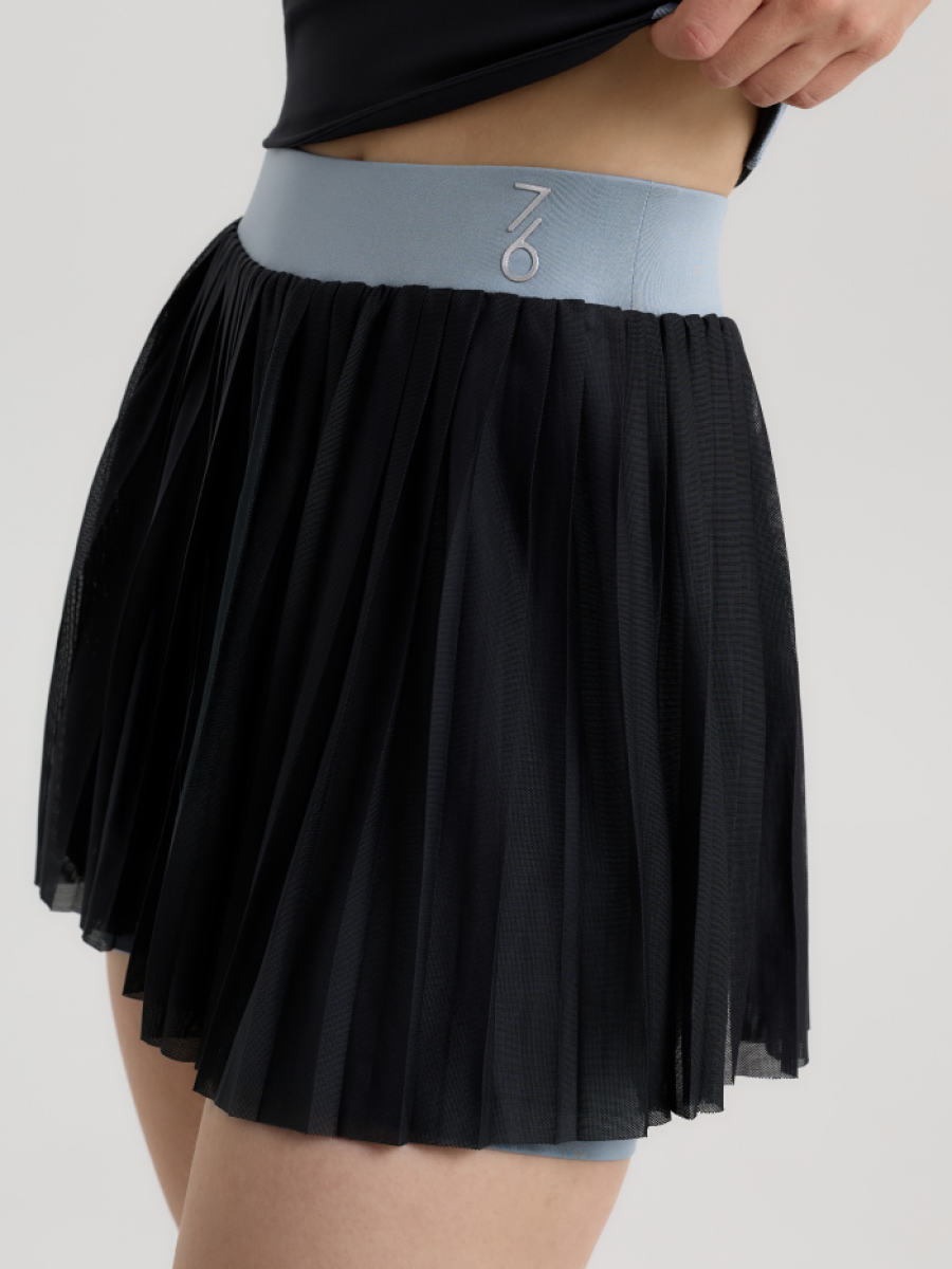Плиссированная юбка со вшитыми шортиками - комфорт и уверенность в каждом движении. Лёгкая сетка и широкий пояс подчёркивают талию и дарят свободу. Идеальный вариант для игры и активного дня.